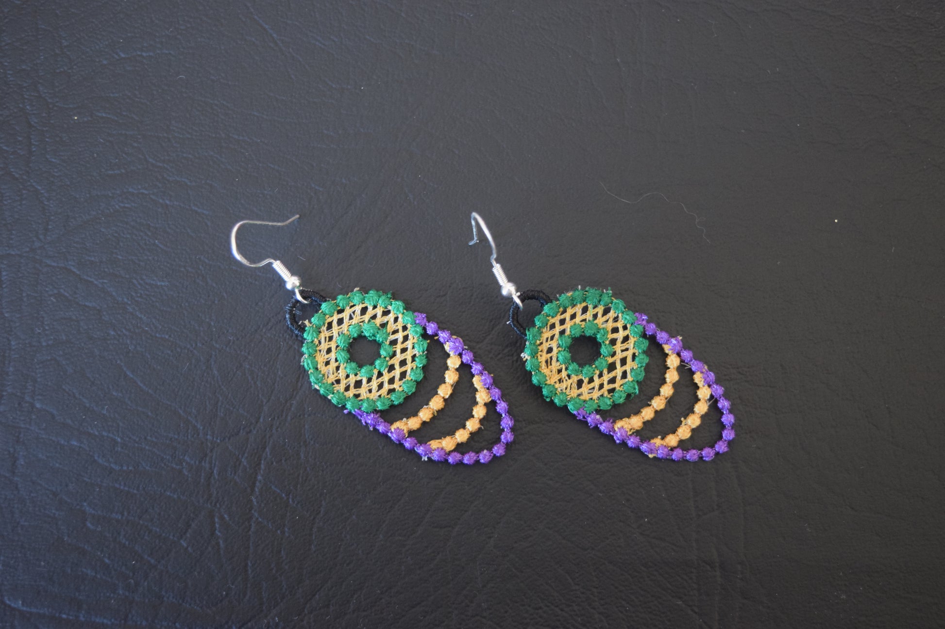 Embroidered Mardi Gras earrings